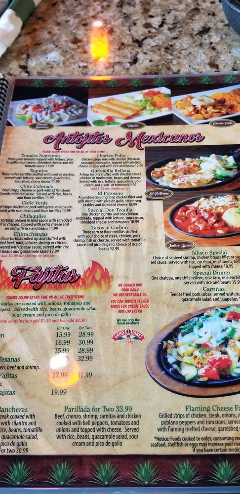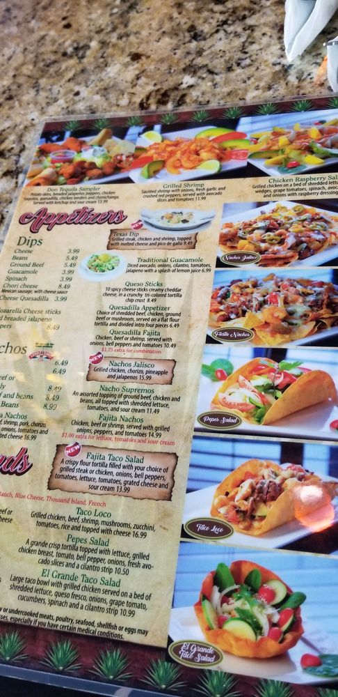 Start your culinary journey with delightful appetizers like the Texas Dip, featuring grilled steak, chicken, and shrimp, or indulge in the Don Tequila Sampler for a taste of variety. Don't miss the Fiesta Nachos crowned with a selection of meats and melted cheese. For greens, the Chicken Raspberry Salad and Don Tequila Chicken Salad are refreshing choices that showcase fresh ingredients.